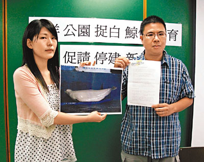 ■海豚保護學會會長洪家耀(右)批評,海洋公園計劃引入野生白鯨等不適合人工飼養的極地動物,破壞自然生態。