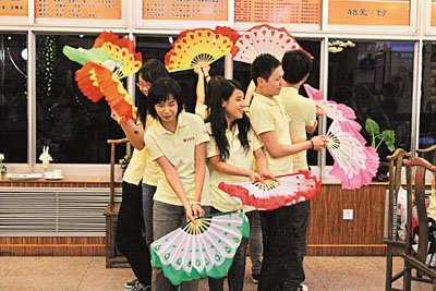 學員們表演扇舞,與中國傳媒大學師生聯歡。