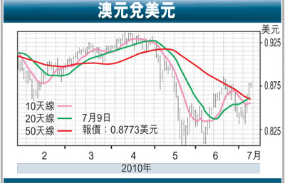 澳元匯價上周在83.15美仙附近獲得顯著支持後,其走勢已持續趨於偏強,在迅速重上85美仙水平後,更一度反覆走高至87.90美仙附近的兩周多高位才稍為遇到較大阻力。今次澳元匯價的反彈幅度能持續有所擴大,主要是受到澳洲6月份就業職位的增幅明顯好於預期所引致,再加上6月份的失業率亦進一步回落至5.1%的17個月以來低點,因此當澳洲的就業市場仍持續對勞工有強勁需求的情況下,部分投資者已認為澳洲央行於往後將可能續有升息機會,這亦有利於澳元匯價的表現。