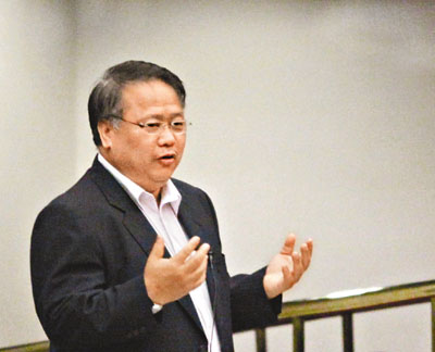 ■黃容根稱,希望改善只有一間收費電視有世界盃播映權的問題。 本報記者曾慶威 攝