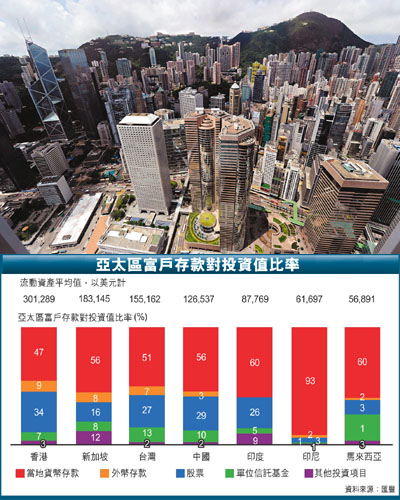 ■香港富戶人均流動資產值較新加坡及台灣高近1倍,為亞太區內最富裕人士。