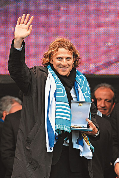 【新華社蒙得維的亞13日體育專電】南非世界盃取得第4名的烏拉圭12日回到國內。烏拉圭萬人空巷,歡慶這些綠茵場上的英雄歸來,總統穆希卡親自到機場迎接球隊。獲得金球獎的前鋒科蘭說:「整個國家都在歡迎我們,這太不可思議了。我們認真而謙虛地工作,雖然烏拉圭只是一個比較小的國家,但我們有理由保持自信。」儘管天氣寒冷,還是有來自全國各地約350萬民眾聚集到蒙得維的亞,為他們的國家足球隊而歡呼。南非世界盃,烏拉圭自1970年之後首次進入4強,用出色的表現贏得了眾多的讚譽。