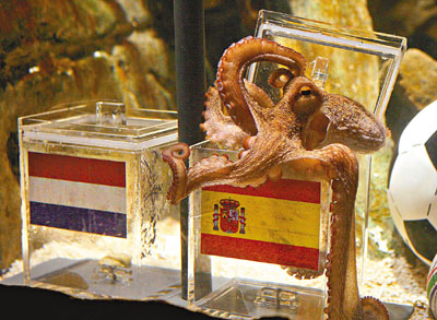【綜合外電】神算章魚「保羅」今屆世界盃估了8場比賽的勝負全中,如今一款蘋果手機系統應用程序就滿足了人們找其占卜的願望。這款由巴西軟件設計師開發的應用程序名叫uTouchLabs,目前售價為0.99美元,在這應用軟件中,用戶可輸入兩個選項內容,供卡通「保羅」選擇。