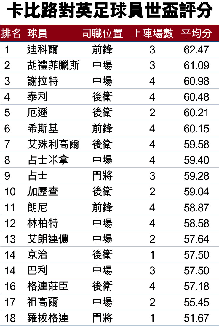 卡比路對英足球員世盃評分 (2010-07-18) (圖)