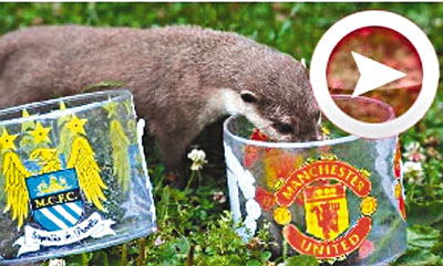 【綜合外電】南非世界盃讓「神算章魚」保羅家喻戶曉,《曼徹斯特晚報》近日就聯絡了距離曼徹斯特最近的一間水族館,讓一隻名叫艾維斯的7歲亞洲短爪水獺作預測,來季曼聯的聯賽排名能否壓過曼城。在分別印有曼聯與曼城會徽的杯中,水獺選擇吃了曼聯杯內的肉塊,意味著水獺較看好曼聯來季的表現。
