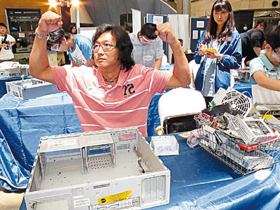 【本報訊】(實習記者 曹人穎)裝嵌電腦難,拆卸電腦亦不易,而且拆出有用零件再重用,更符合環保原則。昨天17名電腦愛好者為爭奪「環保拆機王」的殊榮展開激烈較勁,包括「機電美少女」以及年僅10歲的「拆機神童」等,最終由一名從事數碼媒體的選手以5分18秒奪冠。主辦單位指出,希望借此活動傳遞妥善處理電子廢物的環保信息。