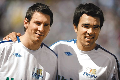 ■美斯(左)獲迪高邀請踢慈善賽。法新社