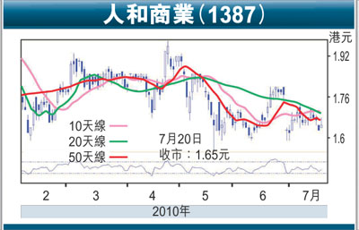 我們首次把人和商業(1387)納入研究範圍,該公司主要於內地城市中心區從事發展及經營地下購物商場。購物商場主要租予服裝服飾批發商。我們給予該股買入評級,目標價為2.19元,相當於2010年預計市盈率8倍,並較我們的估計資產淨值折讓41%。
