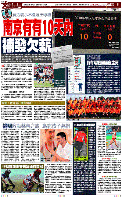在上輪聯賽中,南京有有僅有12名球員隨隊前往客場,這些球員中幾乎沒有主力,唯一的替補還是一名臨時救場的門將,結果以0:10慘敗於廣州恆大隊腳下,震動中國足球圈。隨後留守南京的球員向媒體爆出俱樂部欠薪內幕,引起各界關注。