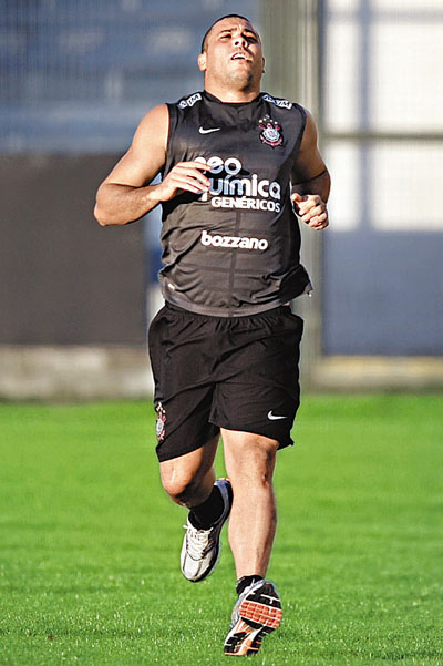 ■朗拿度進行恢復性操練,看來兩個月的養傷期已令這位哥連泰斯的巴西前鋒「發福」不少。 法新社