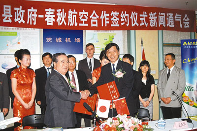 ■春秋航空日前與日本茨城縣政府簽署備忘錄。本報上海傳真