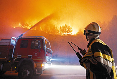 法國南部城市馬賽附近的地中海沿岸前日發生山火,由於火場附近有間煉油廠,加上強風助長火勢蔓延,面積約9平方公里的林地被山火覆蓋,並逼近民居,約2,000名露營人士要從營地緊急疏散,幸無人受傷。 路透社