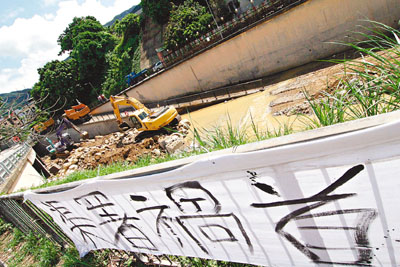 有村民批評當局清理河道工作「馬虎」,積聚沙石仍然堵塞村內溝渠,污水仍未能排走,影響村民清理家園的工作。