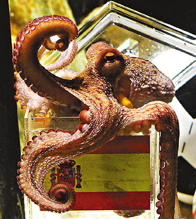 八爪魚大帝保羅(見圖)不但因世界盃名震球壇,下一步更以名氣進軍影壇。據Sky News所指,中國電影集團公司已把保羅在今屆世界盃的驚人事跡拍成電影,現正進行後期製作;不過,由於保羅已退役,實際上有關牠的鏡頭都來自替身。