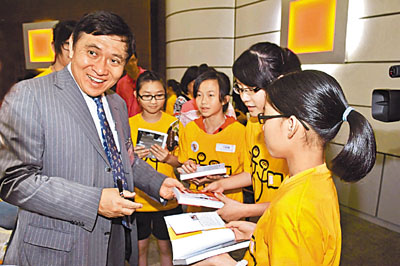 活動完結後,小朋友都踴躍包圍郭炳聯(左)索取親筆簽名留念。