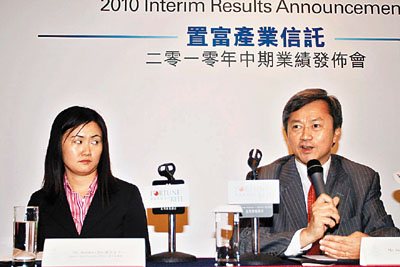 趙國雄指出,上半年收入增長率為23.8%,其中約5%來自加租,其餘約18%則來自新收購三個物業。他指出,下半年由於經濟環境轉好,加上樓市熾熱,地產代理及銀行加租幅度會較大,而與日常生活有關的零售租戶加幅約10%,預期全年整體租金升幅不少於10%。他又指,下半年約有25%出租樓面到期需要續租。