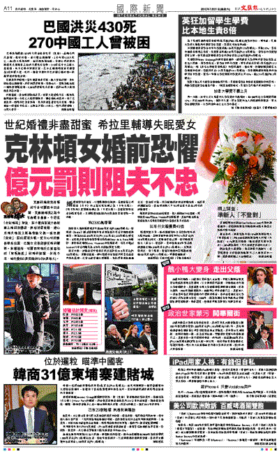 ——世紀婚禮非盡甜蜜 希拉里輔導失眠愛女