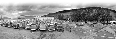 指揮部正在研究作戰部署時,突然從火場傳來消息:9號西北線火場風向突變,火勢轉頭撲向阿里河火場指揮部方向,最近的直線距離約200米。任何一個火頭燒到指揮部駐地,都會嚴重威脅官員和車輛的安全。此時,指揮部周圍有上百台車輛,近2000人撲火隊伍,指揮部告急!