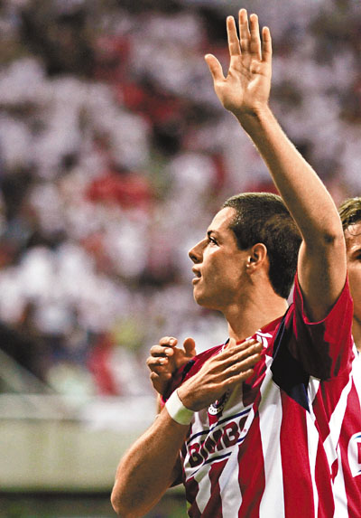 今場比賽在耗資1.5億美元興建的瓜軍新主場上演,作為查維亞靴南迪斯的告別賽,曼聯領隊費格遜賽前曾笑言,假如這位22歲墨西哥國腳是役代表母會攻破己隊大門,「便會罰他錢兼賣走他。」上半場代表舊主瓜隊上陣的靴氏卻老實不客氣,開賽8分鐘便攻破紅魔大門,以爆發力突破越位接應傳送左腳施射破網,主場看台霎時沸騰。
