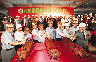 ■新界鄉議局大樓舉行上樑典禮。 本報記者曾慶威 攝