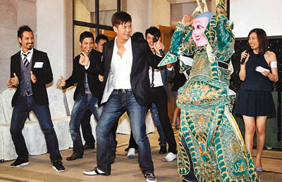 ■台灣主持人周詠訓與一眾主持記者會上興奮跳舞。