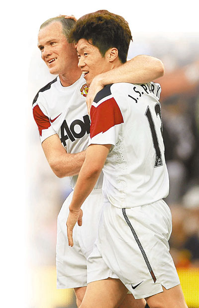 ■朴智星(右)與朗尼重返曼聯大軍。美聯社