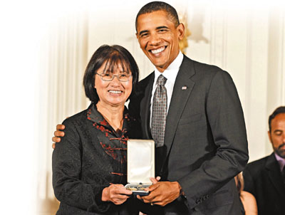 ■奧巴馬在白宮向關惠群頒發榮譽公民獎章。 美聯社