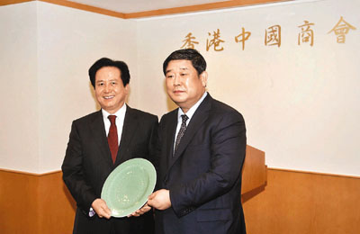 賓主在香港中國商會會所舉行座談會。陳經緯介紹了商會的成立背景、宗旨和會務範圍。他說,商會是在中聯辦、全國工商聯的大力支持下,以及香港特區政府和各界人士關心下,於今年初成立,是一個新的愛國愛港商會組織。成立的目的是充分利用香港國際大都會的獨特地位,幫助內地企業「走出去」,為其引進資金、技術和人才,使之做大做強。