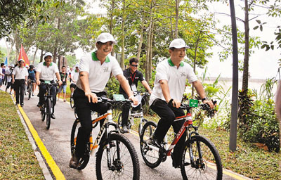 昨日,深圳市舉行萬名市民體驗「綠道」活動,千多名市民騎單車或徒步環遊了龍崗「綠道」。據了解,作為珠三角綠道網的組成部分,深圳市計劃在未來5年內建成總長約2,000公里的「綠道」網絡。 新華社