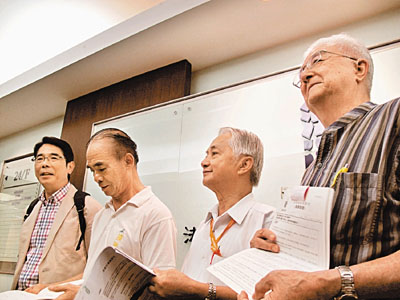 ■黃國健昨陪同3位長者到法援署申請法援,就申領生果金被拒提出司法覆核。 本報記者譚靜雯 攝
