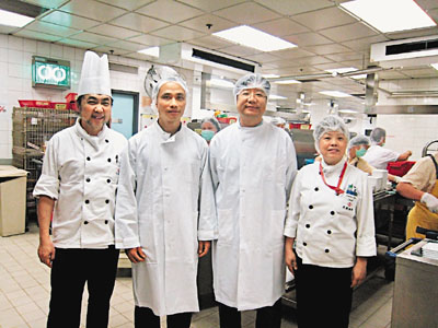 ■新界東聯網醫院膳食部今年再獲得IMS綜合管理系統認證,食物質量及安全、廚房環境等均達標。圖左二為王漢明,圖左三為羅振華。本報記者嚴敏慧 攝