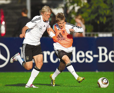 ■德國試驗年輕球員馬高馬連(右)與碧克。 路透社