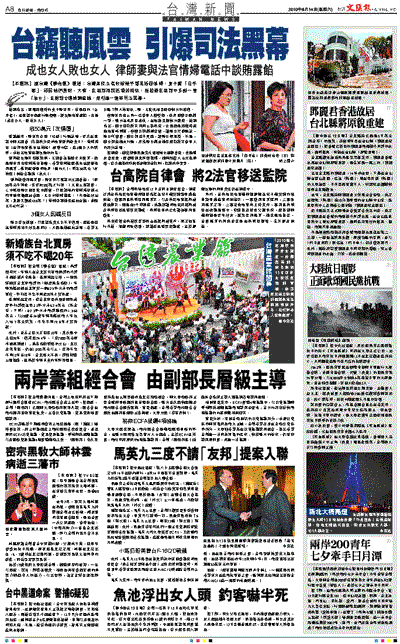 【本報訊】據台灣《聯合報》報道:台灣高院法官收賄幾乎都是透過情婦、妻子當「白手套」,卻因她們貪財、大嘴,在電話裡說送錢的暗號、還趁勢在電話中多撈一筆「油水」,且對話全遭檢調監聽,而引爆一連串司法黑幕。