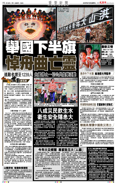 據悉,目前中甲聯賽兩場事關保級及晉級爭奪的焦點戰事已延期至16日舉行;許多遊戲網站也紛紛貼出公示通知15日將關閉服務器;不少娛樂機構也紛紛表示15日將停業一日。而幾乎所有貼出暫停營業通知的公共娛樂單位,都在通知中不約而同呼籲大家攜起手來,為舟曲同胞重建家園獻出自己的一分力量。