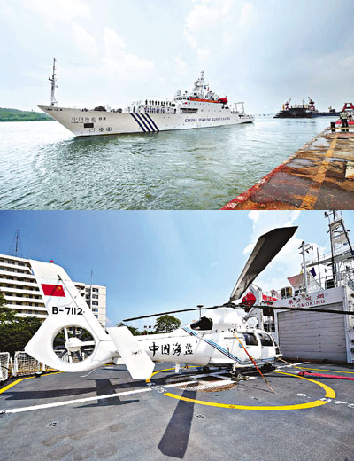 13日,有中國海監旗艦之稱的「中國海監83」船從廣州長洲島碼頭起航,遠赴俄羅斯符拉迪沃斯托克參加由中、美、俄、日、韓、加六國聯合舉行的「北太平洋地區海岸警備執法機構論壇安保聯合演習」。這是中國海監首次參加國際聯合演習。圖為「中國海監83」船緩緩離開廣州長洲島港口。 ■新華社