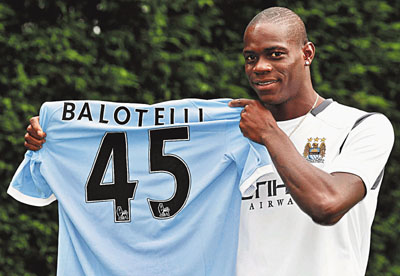 ■巴洛迪利將穿曼城45號球衣出戰。 路透社