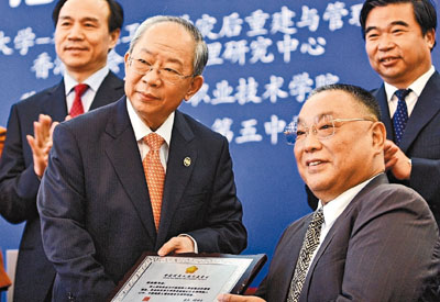 【本報北京新聞中心記者張昕、王添翼20日電】繼香港馬會首階段撥款4.01億元人民幣資助四川4個援建項目後,香港馬會第二批3個援建項目於今日在京簽定,工程涉及3.5億元人民幣。中國殘疾人聯合會名譽主席鄧樸方為馬會主席陳祖澤頒贈牌匾,以感謝香港馬會為中國殘疾人事業所做貢獻。