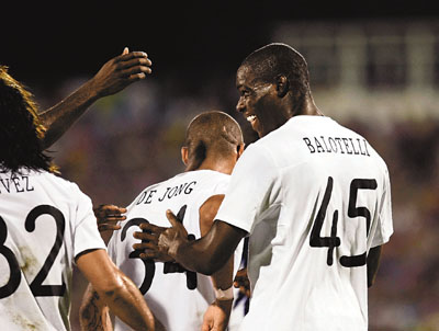 曼城作客羅馬尼亞添美索亞拿,今夏以2400萬英鎊身價加盟的意大利小將巴洛迪利下半場後備入替,在72分鐘接艾迪巴約妙傳冷靜射死角破網,助曼城鎖定勝局。領隊文仙尼讚道:「他的處子入球棒極了。」這位桀驁難馴的小將再跟對方球員發生口角,被球證黃牌警告,文帥說:「我們要教育他,在英超與意大利比賽是不同的。」文帥又認為,因傷退下火線的巴氏料可趕及出戰周一對紅軍的英超大戰。