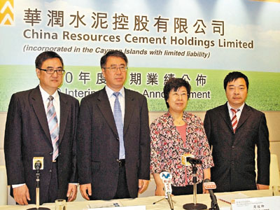 ■左起︰華潤水泥首席財務官劉忠國、總經理周龍山、董事長周俊卿、戰略發展總監余忠良。本報記者廖毅然 攝