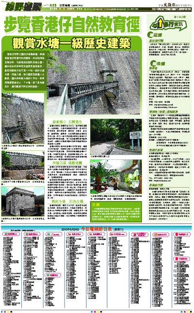 香港仔郊野公園位於港島南麓,南面是香港仔和黃竹坑的屋h,向北則伸延至灣仔峽,可說是附近居民的後花園。園內的自然教育徑及健身徑最宜漫步,最長的路段行走不需一小時。由於交通方便,四通八達,該公園深受晨運人士歡迎,園內尚有練太極的小平台。教育徑環繞香港仔上、下水塘,除了景色優美外,還可觀賞不同生物的蹤跡。