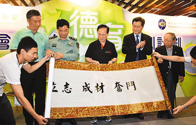■賽馬會青少年德育培訓計劃展開,曾蔭權、李剛、張仕波及陳祖澤主禮。本報記者潘政祁 攝