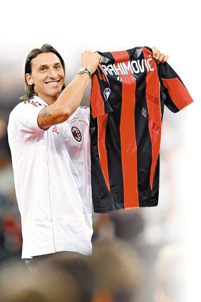 ■伊巴謙向球迷高舉AC波衫示好。 法新社