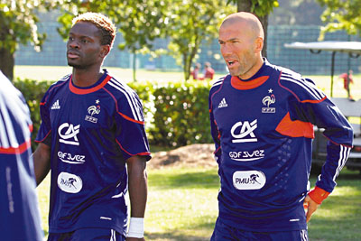 ■施丹(右)為闊別法軍4年的前鋒沙夏打氣。路透社