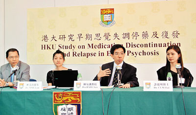 香港大學醫學院精神醫學系思覺失調研究組,在03至06年作出一項研究,將178名至少持續服藥一年,病徵已完全消退的首發性思覺失調患者分成兩組,一組持續服藥,另一組則停藥而轉服安慰劑。研究顯示,79%停止用藥的患者在一年內曾出現復發,再入院率則為13%;持續服藥者的復發風險則減至41%,再入院率僅為4%。