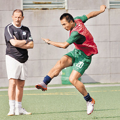 ■李恆匯(右)改投大中後剪一頭短髮以新形象示人。本報記者潘志南 攝