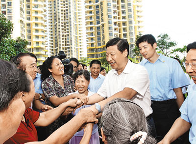 這是習近平07年升任黨和國家領導人以來首次正式視察福建。對於這個他曾經工作了17年、一山一水都十分熟悉的省份,習近平飽含感情。在寧德市硤門畬族鄉柏洋村,在廈門高林居住區金安社區,習近平與民眾親切交談,強調要以改善民生為重點,大力發展社會事業,幫助群眾切實解決就業、醫療、住房和孩子上學等方面的實際困難,保證人民群眾安居樂業。