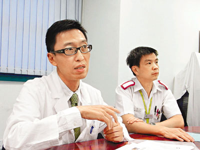 ■將軍澳醫院去年7月開設全港首個急性中風治療專區。圖左為醫院內科副顧問醫生呂曉東,圖右為中風科資深護師朱賢文。