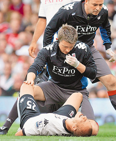 【綜合外電】富咸前鋒森莫亞(見圖)在周末聯賽受重傷,最少需要休息4個月,可能影響他的球員生涯。富咸與狼隊一仗中,森莫亞遭到狼隊隊長卡爾亨利在背後的侵犯,從電視鏡頭可見,森莫亞右小腿出現明顯彎曲。另外,熱刺中場莫迪歷在前晚的英超對西布朗比賽時受傷,懷疑可能出現骨折,或缺席周中歐聯對雲達不來梅;此外,迪科爾踢英格蘭國家隊時受傷,連同受傷六周的戴臣,熱刺獲得英格蘭足總一百萬鎊的補償。