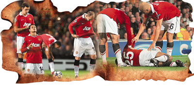 【綜合外電】曼聯(紅魔)領隊費格遜為留力周末對利物浦的英超大戰,昨晨歐洲聯賽冠軍盃(歐聯)冒險收起大批主力,結果主場遭自己球員時代效力過的蘇超球隊格拉斯哥流浪(格流)守和0:0。賽事中紅魔翼鋒路爾斯華倫西亞慘被鏟斷腳,料提早「收咧」。紅魔C組首戰主場失分,費爵爺為此辯護,但承認後悔未讓貝碧托夫(貝托)上陣。