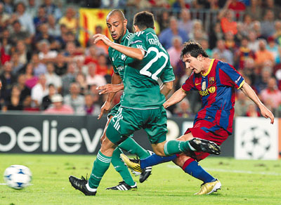 【綜合外電】剛於西甲爆冷不敵升班馬的巴塞羅那,昨晨出戰歐聯D組首場比賽,主場反勝希臘彭拿典奈高斯5:1,梅開二度的美斯更以27球超越了25球的李華度,成為巴塞歐戰歷史神射手。同組,丹麥哥本哈根主場勝俄羅斯魯賓卡山1:0。